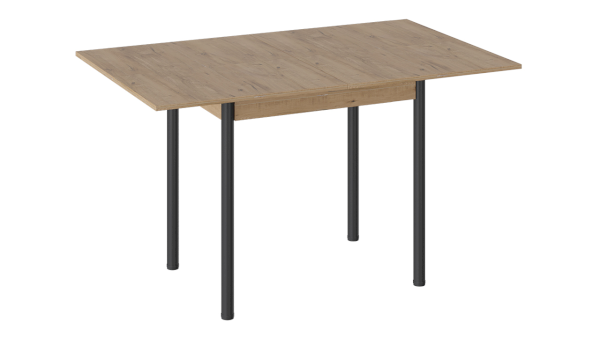 Модель имеет поворотно-раскладной механизм трансформации. В случае прихода гостей длина стола увеличивается вдвое: для этого нужно развернуть столешницу на 90 градусов и опустить верхнее крыло.