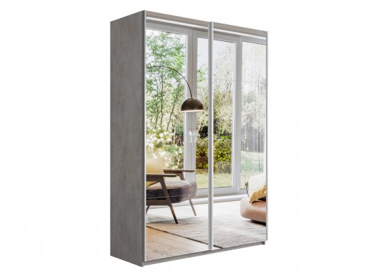 Шкаф-купе 2-х дверный Прайм Зеркало/Зеркало 1400х2300х570 мм Бетон