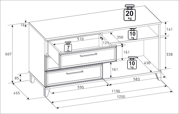 Максимальная нагрузка на полку: 10 кг