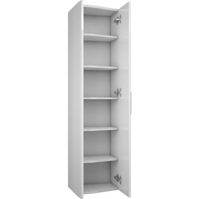 Подвесной пенал Veneciana Fabia шириной 35 см с корпусом из влагостойкой ЛДСП и фасадом из МДФ, покрытых белой глянцевой эмалью. Внутри шкафа установлены 4 полочки из стекла толщиной 4 мм. Ручка цвета хром расположена по центру шкафа. Петли с доводчиком Hettich обеспечивают плавное закрывание дверки, защищая корпус, фасад и полки от возможных повреждений. Установка петель универсальна и возможна с обеих сторон.