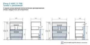 2 ящика; ручка врезная металлическая хромированная, опоры квадратные регулируемые.