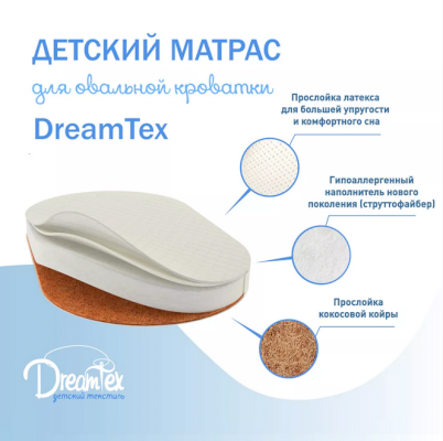 Овальный матрас латекс 1 см + холкон 8 см + кокос 1 см (Dreams)