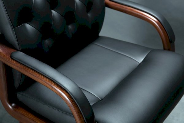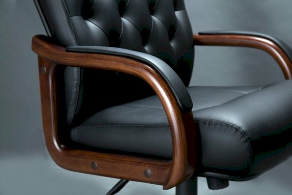Кресло с высокой спинкой, с подлокотниками прямоугольной замкнутой формы с мягкими накладками обитыми в цвет кресла.
