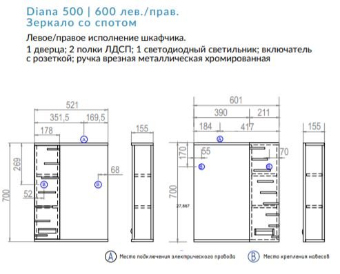 Материал: ЛДСП, ЛМДФ, зеркало