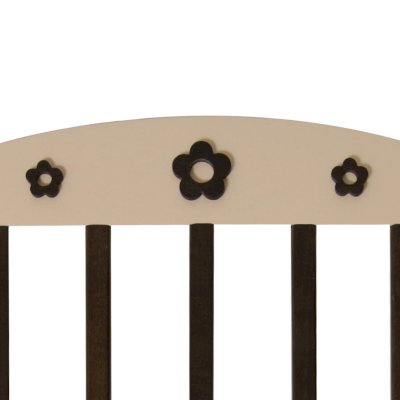 Кроватка декорирована цветочками.