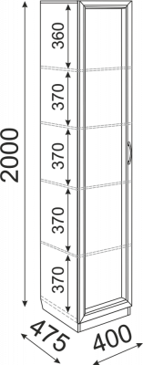 • Пенал имеет 4 полки: 3 съемных + одна жесткая (вторая снизу).
