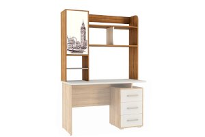 Данная надстройка оборудована вместительными полками, предназначенными для хранения книг, учебников, папок и другой необходимой документации. Также на этих полках можно разместить офисную технику, такую как сканер или принтер. Особенностью дизайна является фасад закрытой ниши с оригинальным принтерным рисунком.