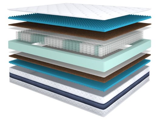 Пенополиуретан с массажной нарезкой и натуральная латексированная кокосовая койра - это классика в достижении массажного эффекта индустрии здорового сна. RIVALLI представляет лидера массажного сегмента матрасов средней жесткости!