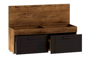 Тумбу Livorno НМ 040.72 можно использовать как обувницу и как банкетку одновременно. Модуль оборудован двумя выдвижными ящиками. В каждом из них можно разместить определенный вид обуви во избежание беспорядка при хранении. Под откидной крышкой тумбы находится небольшой отсек для средств по уходу за обувью, разделенный перегородкой на две равные части для удобства хранения. Мягкий элемент на крышке модуля превращает его в банкетку, на которой комфортно обуваться.
