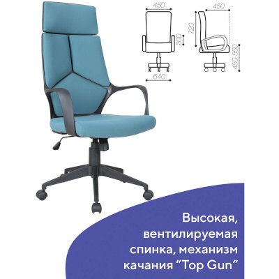 Надежный механизм качания "Top Gun" гарантирует хорошую поддержку спины и поясницы за счет возможности свободного качания с фиксацией в одном рабочем положении и регулировку угла наклона под вес сидящего.