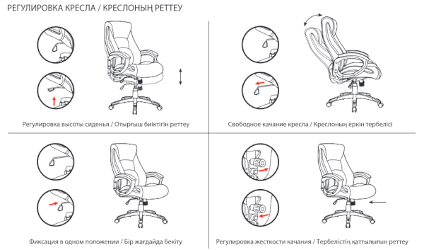 Тип механизма кресла: "топ-ган" качание с регулировкой под вес и фиксацией в 1 положении