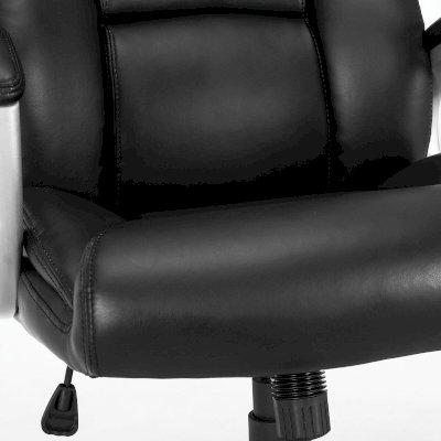 Обивка выполнена из высокотехнологичного, современного материала - рециклированной кожи. По эластичности и прочности рециклированная кожа максимально близка к натуральной. Этот материал устойчив к истиранию, что позволит сохранить внешний вид кресла на протяжении всего срока эксплуатации. Высокая спинка с широким мягким подголовником и боковой поддержкой гарантируют высокую степень комфорта на протяжении всего времени использования. В набивке кресла использован поролон высокой плотности - это обеспечивает оптимальную поддержку пользователя и препятствует "проминанию" сиденья в ходе эксплуатации.