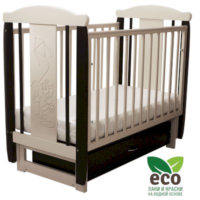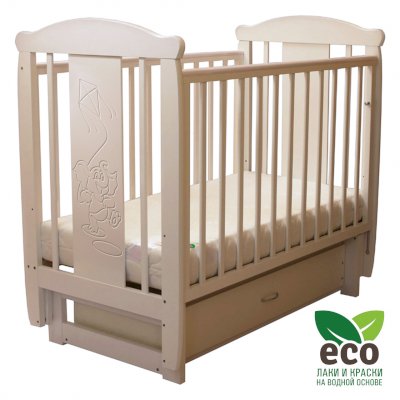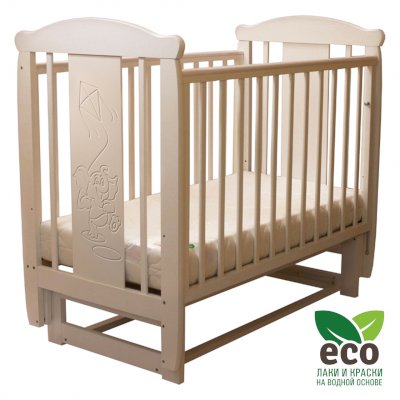 Кроватка "Соня 04" имеет механизм качания поперечный маятник. Механизм качания фиксируется. Возможен вариант с ящиком.
