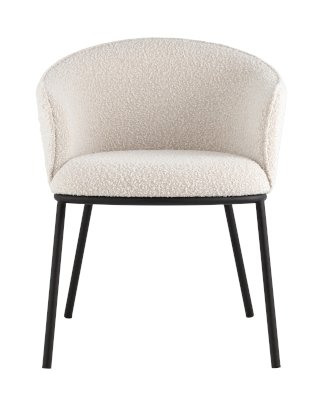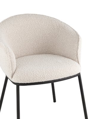 Обеденный стул Дон с мягкой полукруглой спинкой и сидением из ткани букле отлично впишется в обеденную зону любой современной кухни. Каркас металлический, ножки выполнены в черном цвете. Дополнительно предусмотрены специальные подпятники, которые предотвращают скольжение и повреждение напольного покрытия. Прекрасно сочетается с обеденным или письменным столом.