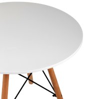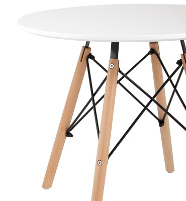 Детский дизайнерский стол очень компактный и неприхотлив в эксплуатации. Деревянные ножки соединены красивой металлической конструкцией, которая смотрится эффектно и добавляет модели надежности. Белая столешница изготовлена из качественного МДФ. Оптимально для детей дошкольного возраста.