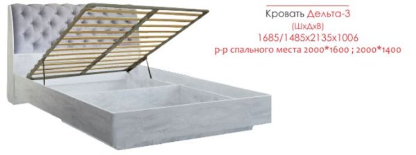 Кровать снабжена ортопедическим основанием с подъемным механизмом. Матрас в комплект не входит и приобретается отдельно.
