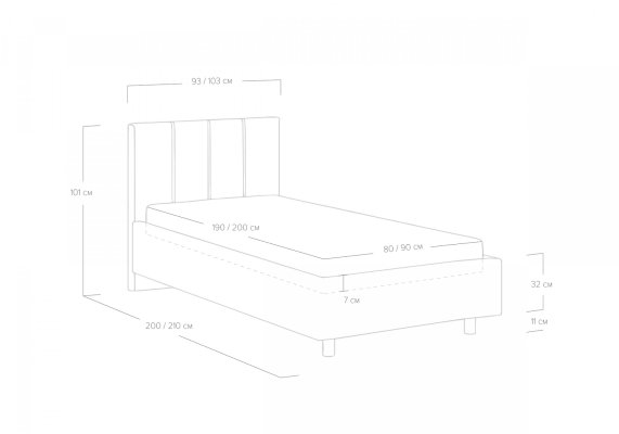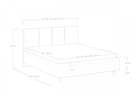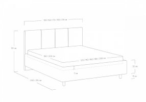 Размер спального места 80*200 / 90*200 / 120*200 / 140*200 / 160*200 / 180*200 / 200*200 / 90*190 / 120*190 / 140*190 / 160*190 / 180*190