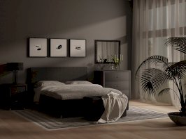 Элегантная интерьерная кровать с изголовьем украшенным декоративной вертикальной строчкой. Модель изготовлена из ДСП. В комплект кровати входит кроватное основание. Каркас основания выполнен из металла, ламели - из берёзы. При необходимости в комплект можно включить подъемный механизм с бельевым ящиком. (Задняя часть спинки обита темно-серым спанбондом)