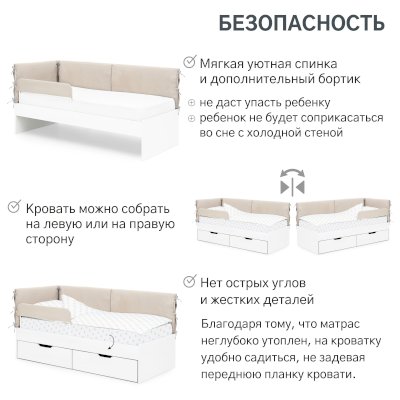 Детская мягкая кровать с накидным чехлом Бельмарко “Denvas” – это комфортное место для сна и игр мальчика или девочки от 2 до 10-12 лет.