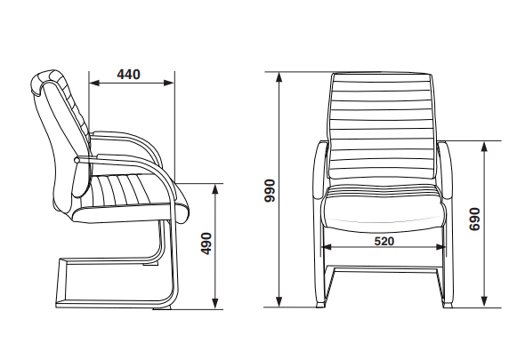 Высота кресла: 990