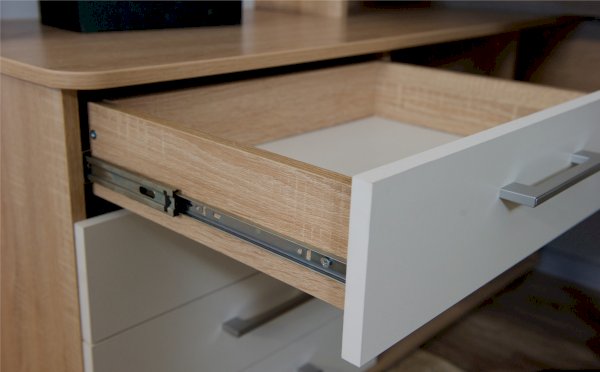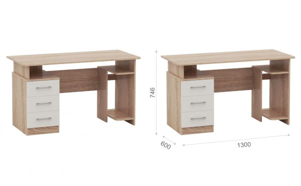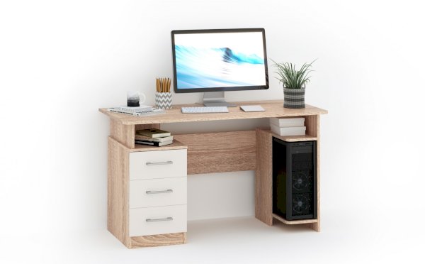 Стол письменный компьютерный – удобное рабочее место для студента, школьника, отличное решение для кабинета с интерьером в скандинавском стиле. На широкой столешнице легко поместится монитор, клавиатура и документы, а в ящиках поместятся все письменные принадлежности. Выделено место для системного блока. В столах системы Гарвард мягкие, удобные для опирающихся рук края, с кромкой в 2мм, а также, скруглённые углы столешницы. Корпус выполнен в теплом древесном цвете светлого дуба с приятной на ощупь фактурой, фасады - белые матовые. Нейтральные оттенки мебели позволяют легко вписаться уже в готовый интерьер.