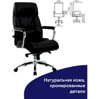 Обивка внешней поверхности кресла выполнена из натуральной кожи - классического материала премиум-класса. На нерабочих поверхностях применяется материал-компаньон - экокожа.