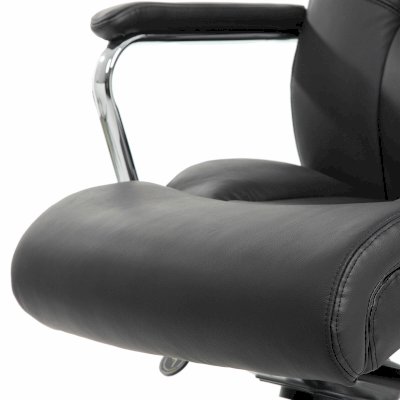 Стильные хромированные элементы, увеличенные размеры сиденья и спинки, а также особый механизм регулировки поддержки поясницы исключают утомление в течение всего рабочего дня.