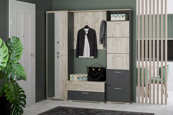 Вешалка из коллекции Санти выполнена в виде настенной панели с тремя крючками. Сверху модуля располагается полка для головных уборов и аксессуаров. Вешалка обеспечит быстрый доступ к самым нужным предметам гардероба.