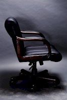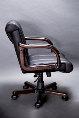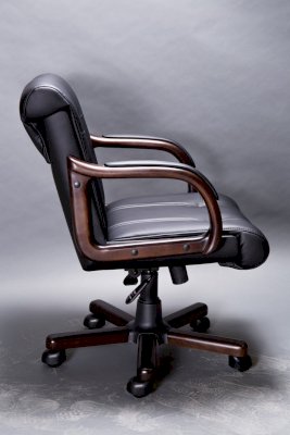 Кресло с низкой спинкой, с подлокотниками прямоугольной замкнутой формы с мягкими накладками обитыми в цвет кресла.
