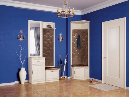 Вешалка обрамляется профилем собственного производства. Профиль из МДФ окутан пленкой в цвет фасада. Пленка имеет рисунок, имитирующий патину, благодаря которому профиль выглядит более выразительным и стильным.