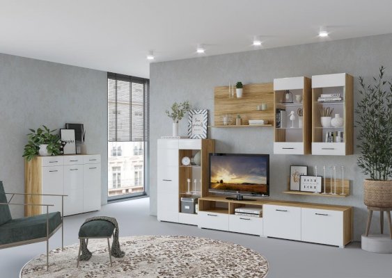 Дуб крафт золотой/Белый глянец