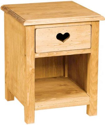 Аккуратная тумбочка для спальни из натурального дерева в стиле Прованс. Ящик декорирован резным сердцем, которое одновременно является ручкой для выдвижения ящика.