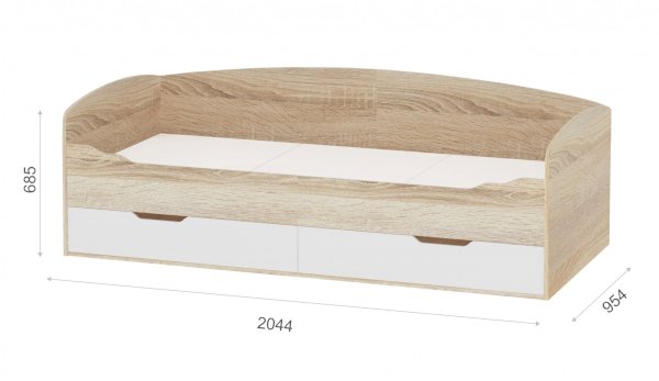 Топчан в скандинавском стиле со скругленным изголовьем и высокой спинкой имеет два больших ящика, с помощью множества роликов его легко выдвинуть. Для безопасности и удобства открывания выдвижной ящик вместо ручек оснащен выемками на лицевой части фасада. Высокая спинка в топчане предохраняет от соприкосновения с холодной стеной во время сна. Пользоваться кроватью может взрослый и ребенок любого возраста, так как она имеет размеры стандартной кровати 90х200см, устойчивую конструкцию и нейтральный для интерьера цвет. Идеально компонуется со всеми модулями системы Стелс. Мебель выполнена из высококачественных экологичных материалов.