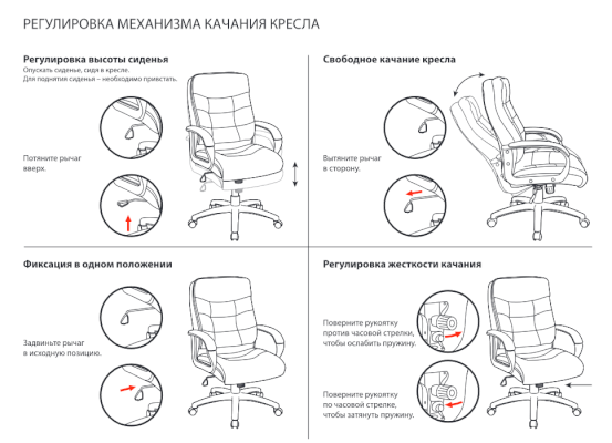 Тип механизма кресла: "топ-ган" качание с регулировкой под вес и фиксацией в 1 положении