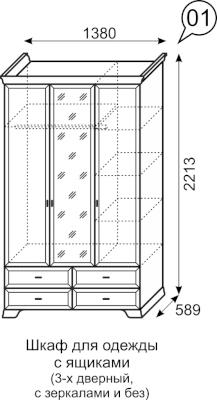 Шкаф 3-х дверный с ящиками и зеркалом №1 Венеция (Ижмебель)
