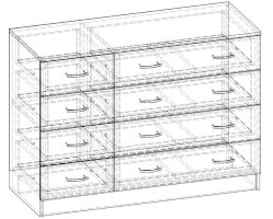 • Корпус, полки и фасады изготовлены из ЛДСП 16 мм с кромкой ПВХ 0,4 мм.
