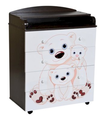 Пеленальный комод 800/4 Lilu 5 отличается привлекательным дизайном с использованием тематических детских принтов. В конструкции изделия предусмотрены 4 маленьких передвижных колеса, несколько вместительных ящичков на шариковых направляющих и откидывающаяся пеленальная столешница. Детский пеленальный комод, декорированный красочным рисунком, вмещает в себя постельные принадлежности, средства гигиены, распашонки, подгузники, игрушки, ползунки и другие личные вещи ребенка. Гладкая столешница идеально подходит для пеленания ребенка, а колесики позволяют быстро перемещать комод.