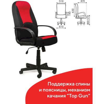 Надежный механизм качания "Top Gun" позволяет осуществлять свободное качание с фиксацией в рабочем положении и регулировки усилия качания под вес сидящего. Он помогает обеспечить хорошую поддержку спины и поясницы.