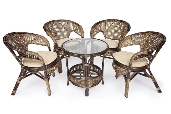 Материал: каркас - натуральный ротанг (высший сорт), столешница - закаленное стекло