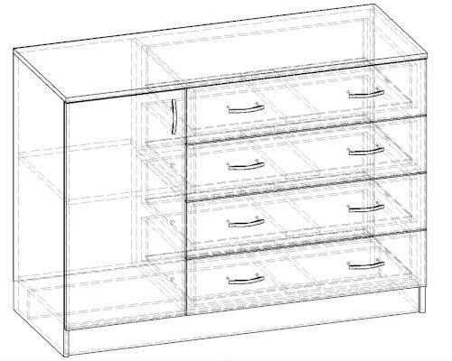 • Корпус, полки и фасады изготовлены из ЛДСП 16 мм с кромкой ПВХ 0,4 мм.